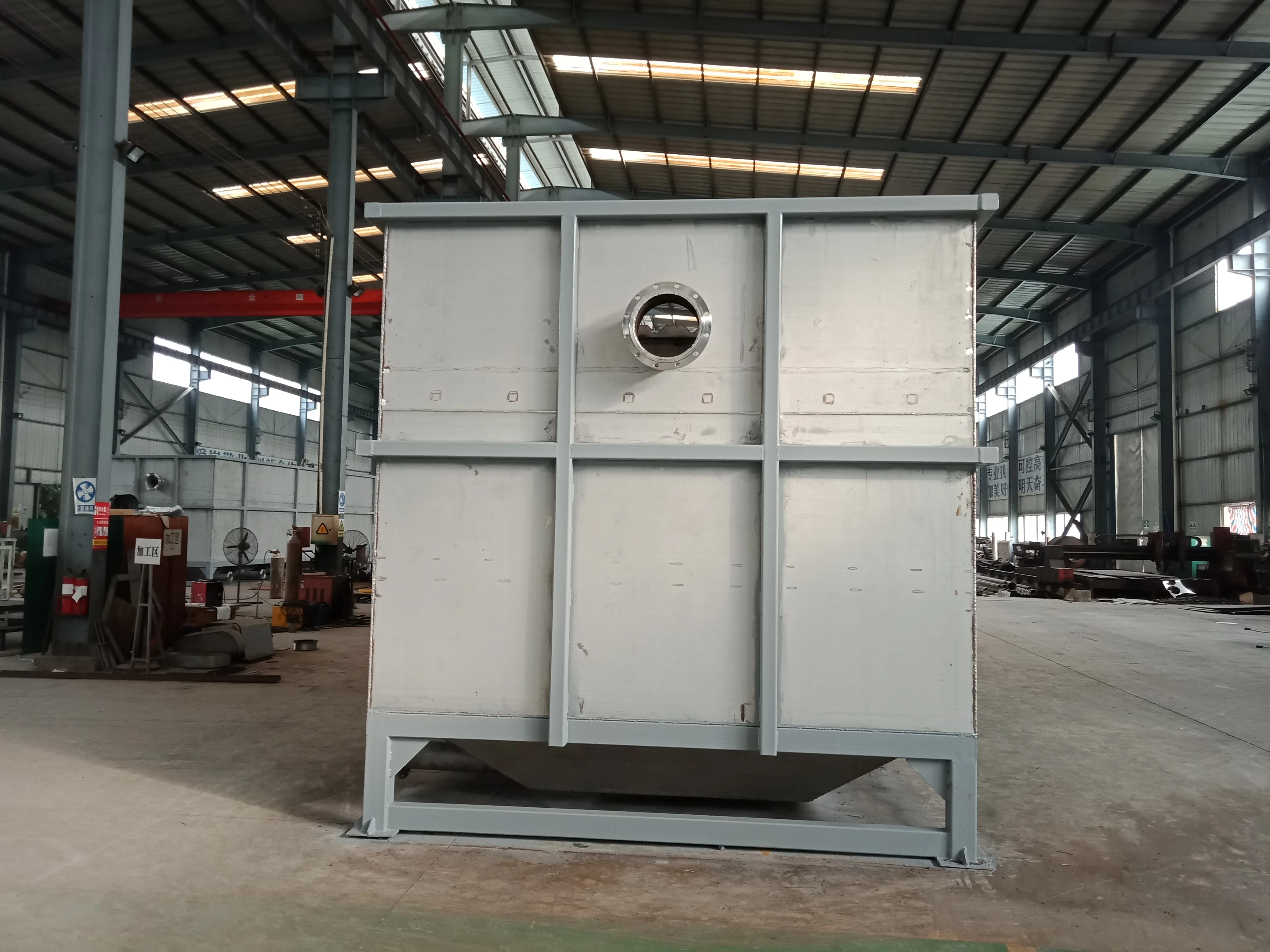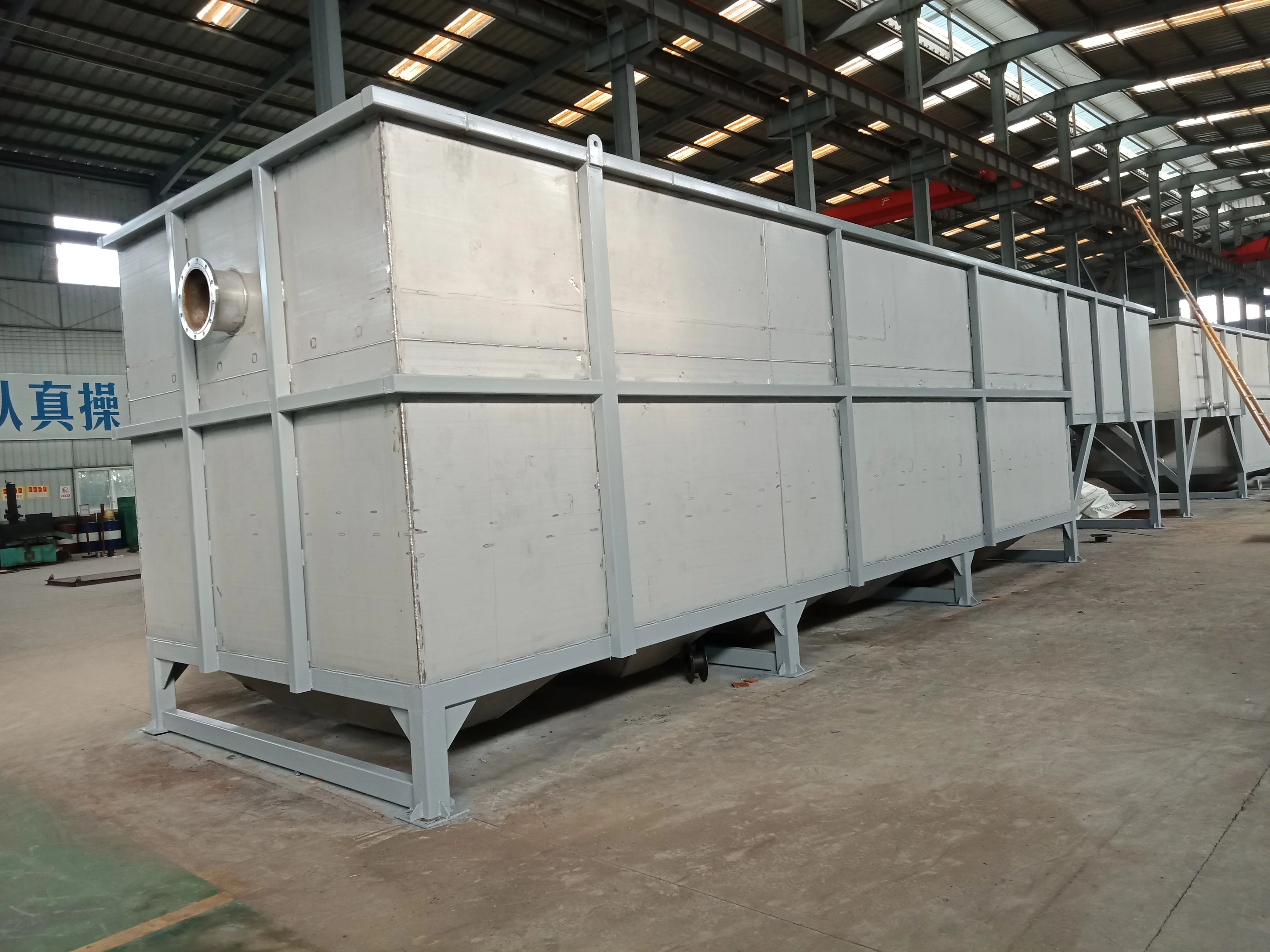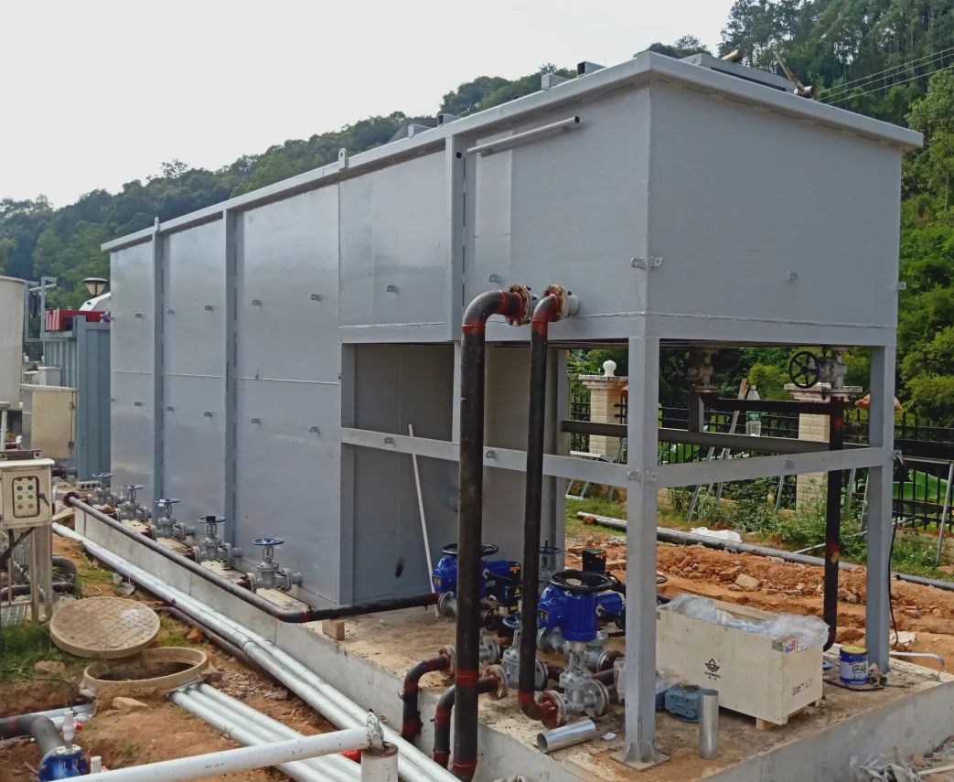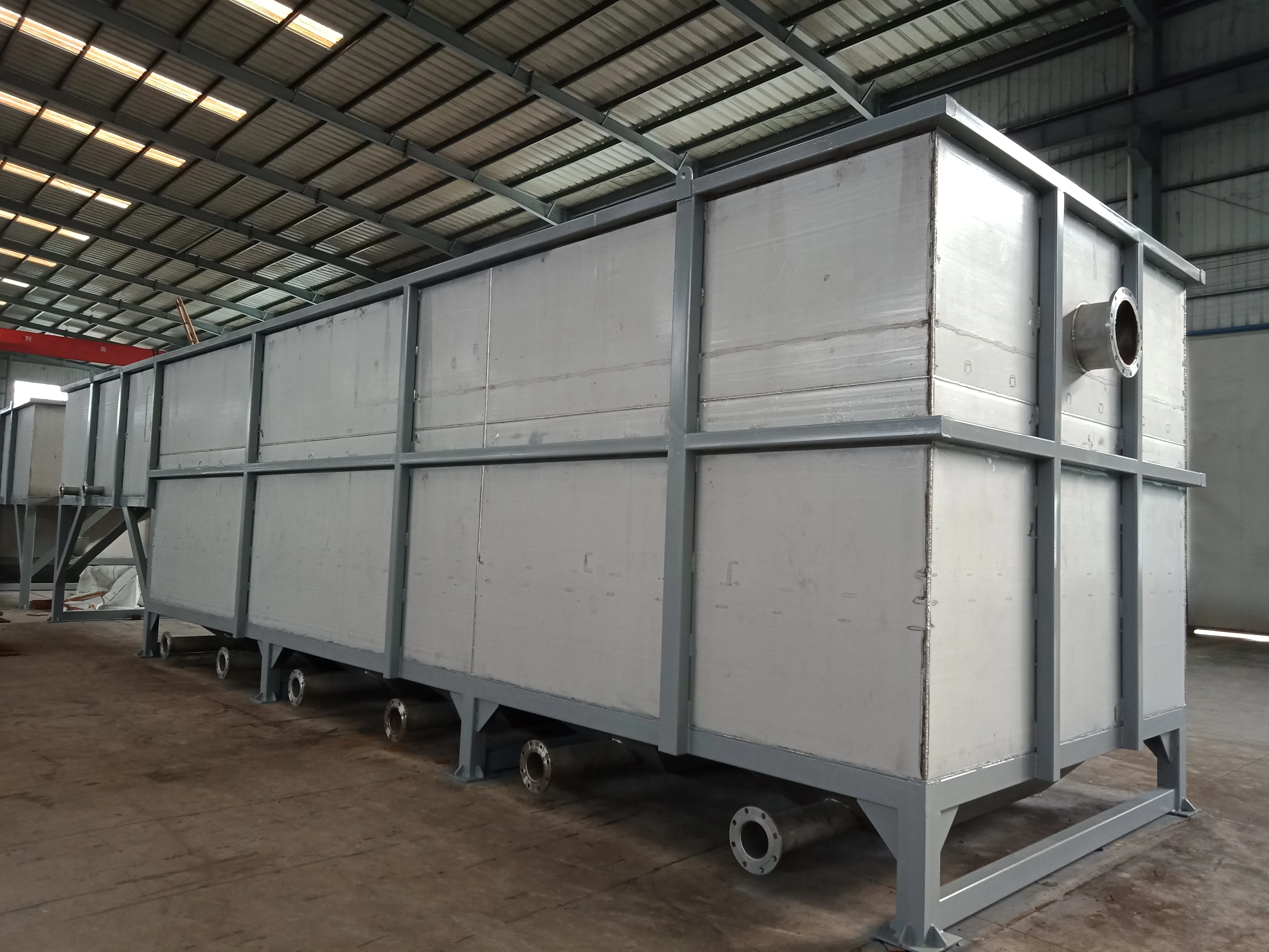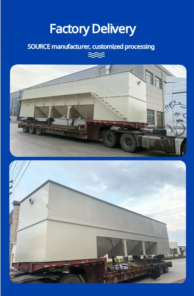2、Sedimentation area; set horizontal water distribution device for even water intake. The middle part of the settling area adopts porous inclined tube packing, which reduces the flow space of the mixed liquid, thus achieving the effect of rapid settling. Inclined plate sedimentation tank is set at the bottom, which is good for sedimentation of suspended matter and activated sludge. The bottom of the sedimentation tank is equipped with a 120-degree downward porous sludge discharge pipe, which is conducive to the uniform discharge of sludge. The upper part of the sedimentation area is equipped with a water outlet weir, so that the clear water can be evenly and stably discharged after sedimentation.
