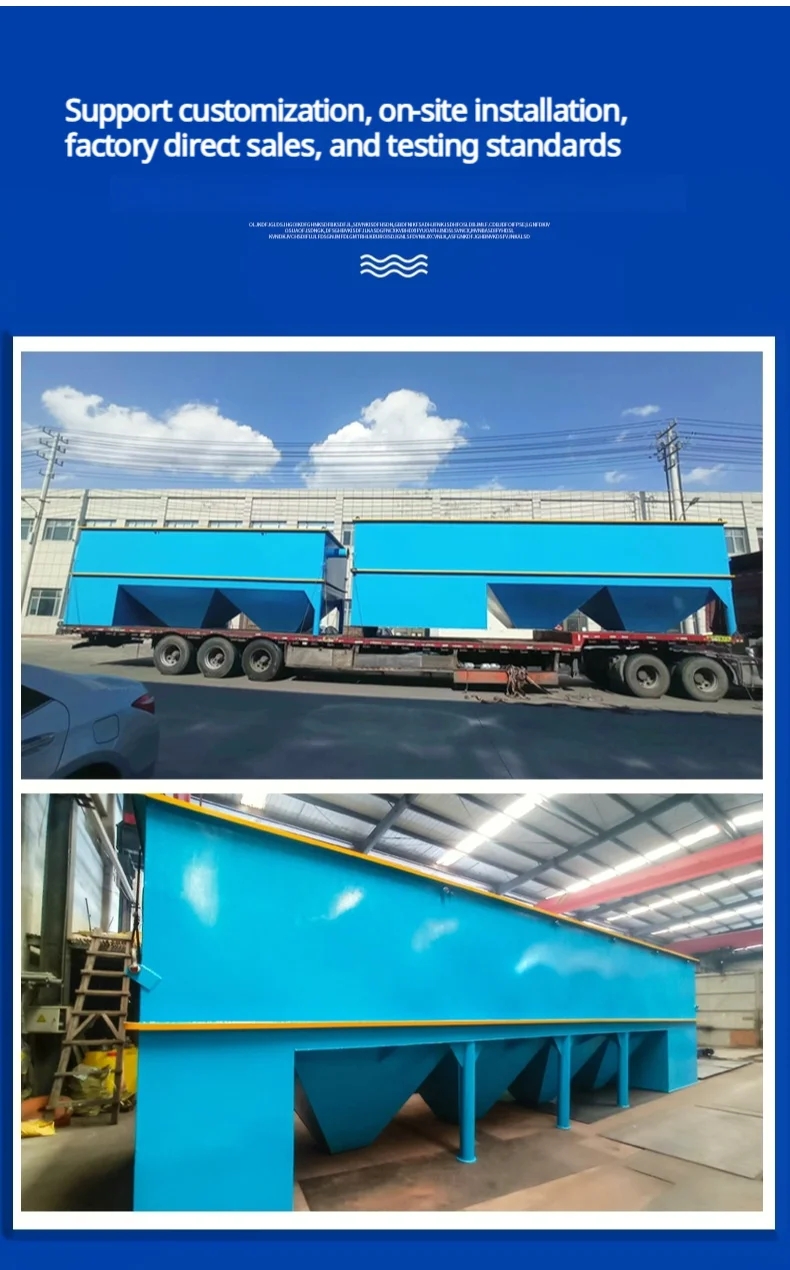 1、Flocculation reaction area; Multi-stage reaction stirrer, the stirring speed is gradually changed from fast to slow, so that the flocculant and sewage are fully mixed to achieve better flocculation. The flocculation reaction area is set with high and low staggered water inlet and outlet to make the mixture get better reaction and prolong the flocculation residence time.