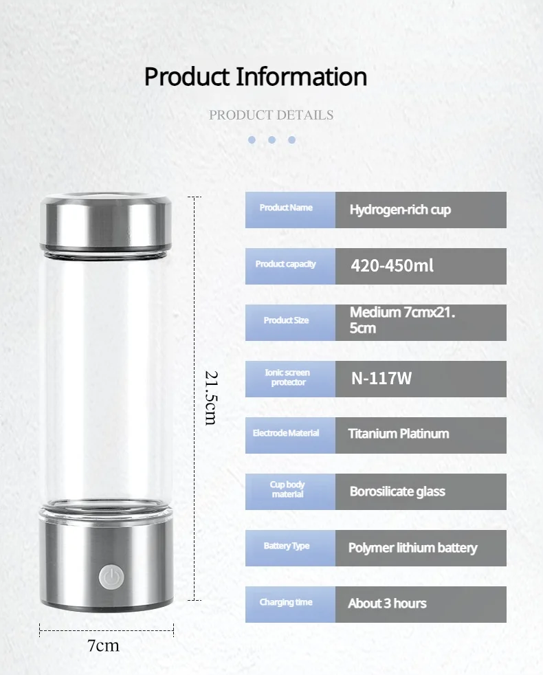 New Hydrogen Water Bottle Hydrogen Water Generator High Efficiency Hydrogen Glass Water Bottle